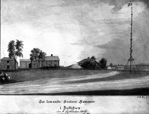 "Det lämnade doktorshemmet i Hällefors", Hällefors gård, lavering av J.G. Schultz.