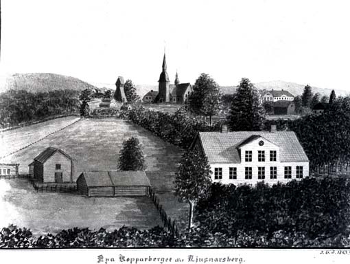 "Nya Kopparberget eller Ljusnarsberg", lavering av J.G. Schultz.