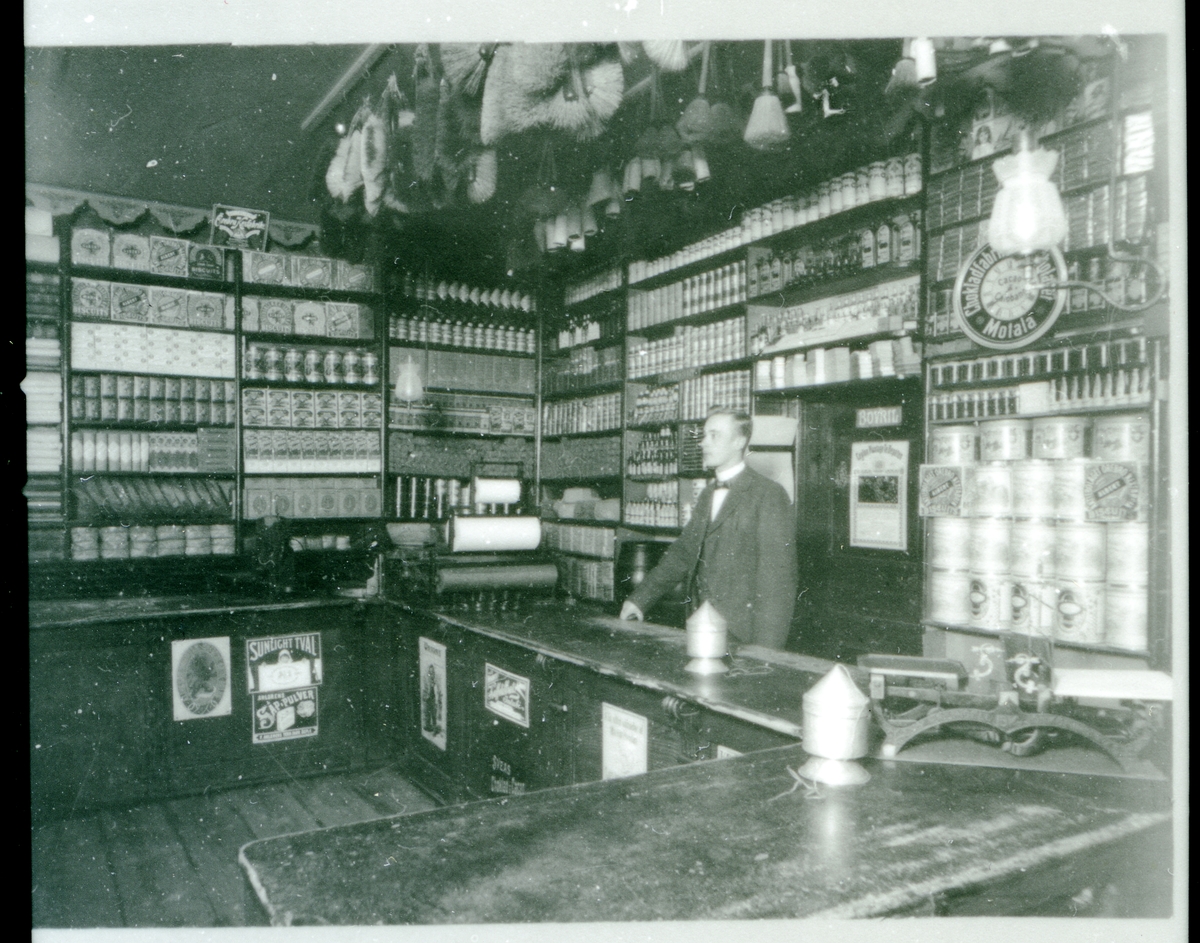 Interiör av köpman Erland Nilsson's diversehandel, c:a 1900.