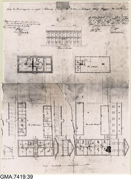 Osignerad originalritning av B.C. Malmberg. Godkänd 1/8 1856 av stadsarkitekten H. Kaufmann och approberad av magistraten den 8/8 samma år.