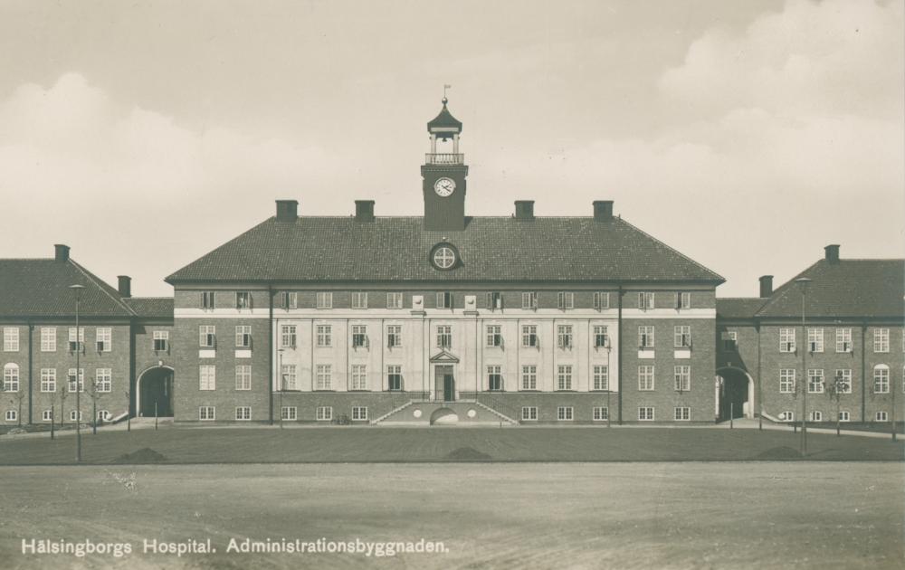 Vykort föreställande administrationsbyggnaden på Hälsingborgs hospital, senare S:ta Maria sjukhus.