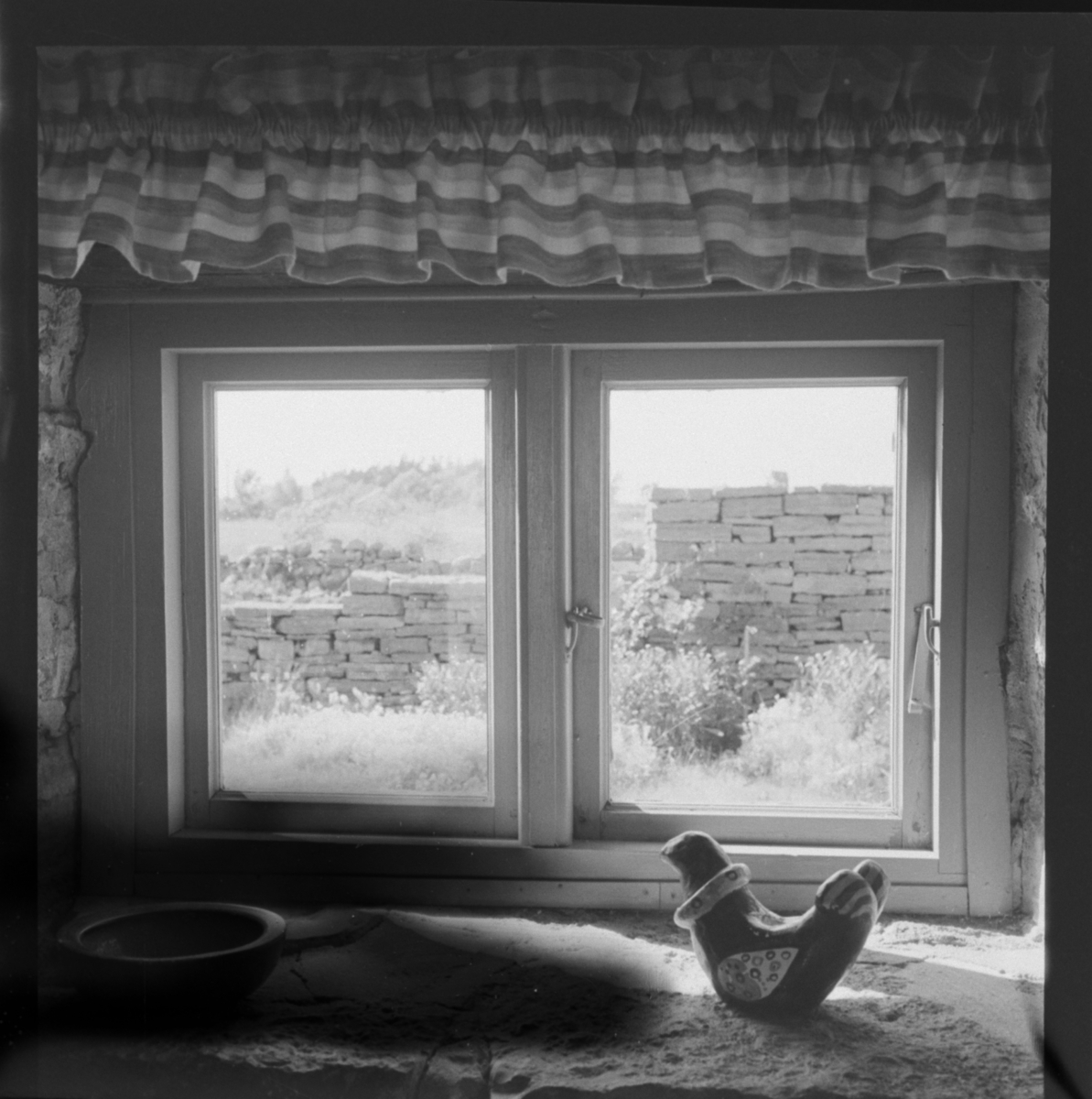 Fil dr Knut Hagberg (Svenska Dagbladet) interiör o exteriör, Hagbergs stuga på Alvaret. Hagberg själv