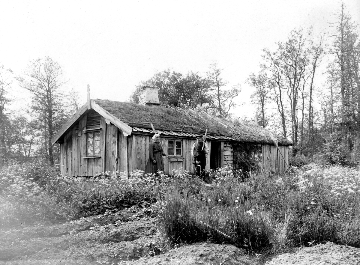 Kalle och Lisa vid sin stuga på Höverö gods.