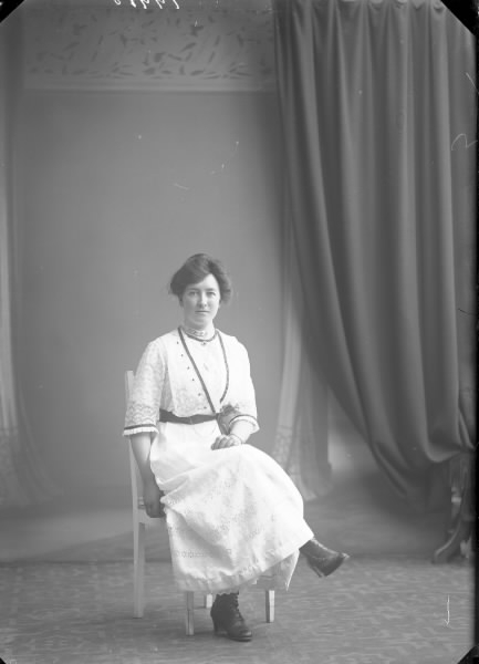 Kvinnoporträtt, ateljéfoto. Beställare är troligen Lina Andersson, Svenstorp.