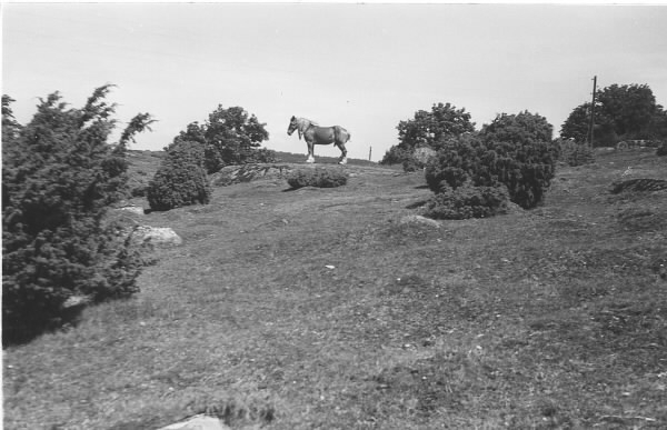 Vid avtagsvägen till Vickan norr om Mariedal står en ensam häst.