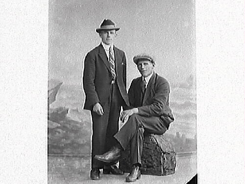 Två ateljébilder av två män i kostym. Den ene är förmodligen Sven Börjesson, Göteborg, som beställde bilderna.