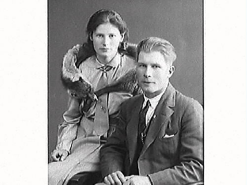 Ateljébilder av ett ungt par eller syskon. Kvinnan bär en rävboa kring axlarna. Sigurd Andersson från Gödastorp, Skreanäs beställde bilden.