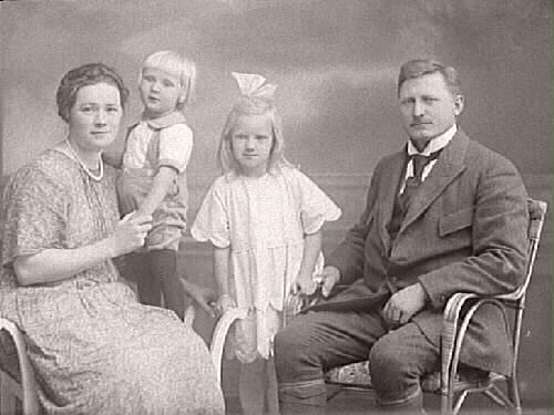Familjebild. Mejerist August Johansson från Tvååker med fru och två barn.