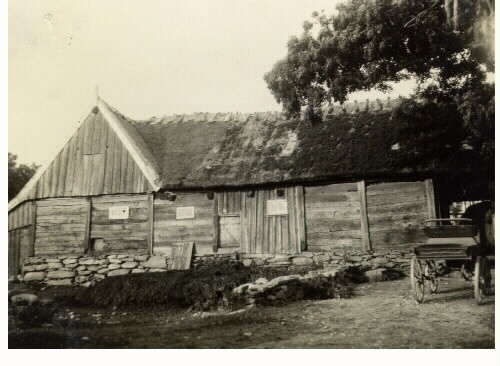 Norra partiet av Skattagårdens gamla ladugård i Stråvalla. Den blev såld till Danmarks nationamuseum 1944, dit den flyttades. Hallands Nyheter berättade om detta den 13 november 1944. (Se även bildnr FHN64_2-4)