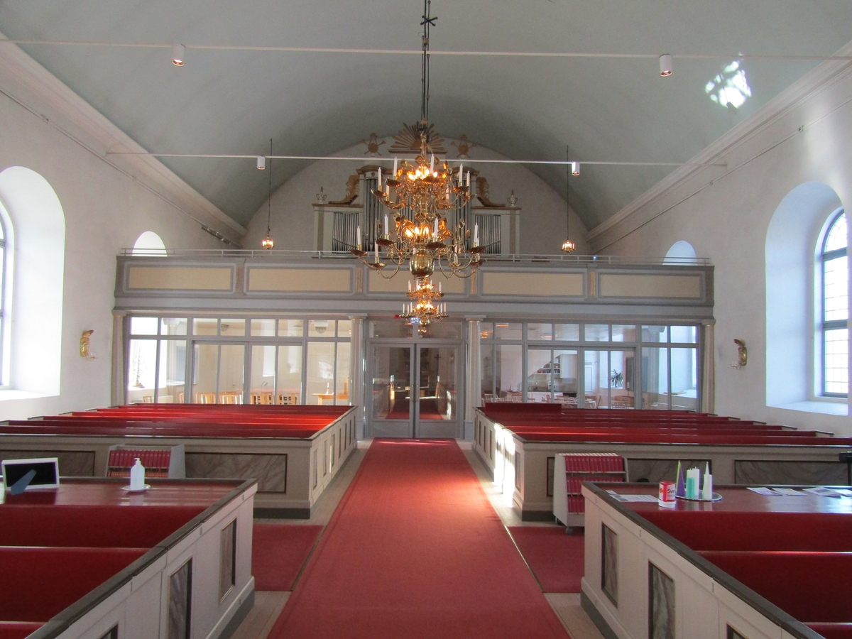 Interiör sedd mot väster med den nya läktarutformningen.