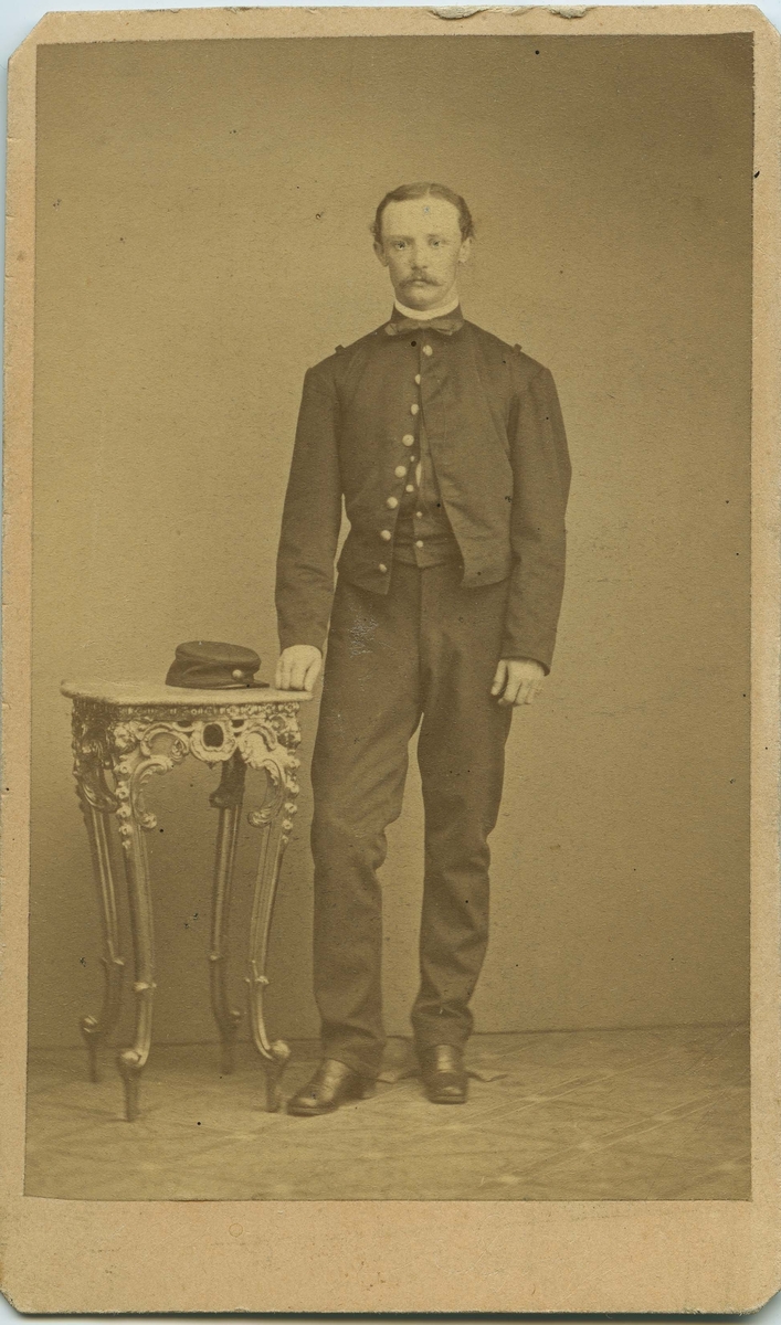 Porträtt på underlöjtnant Björk vid Jönköpings regemente. Född 1843.