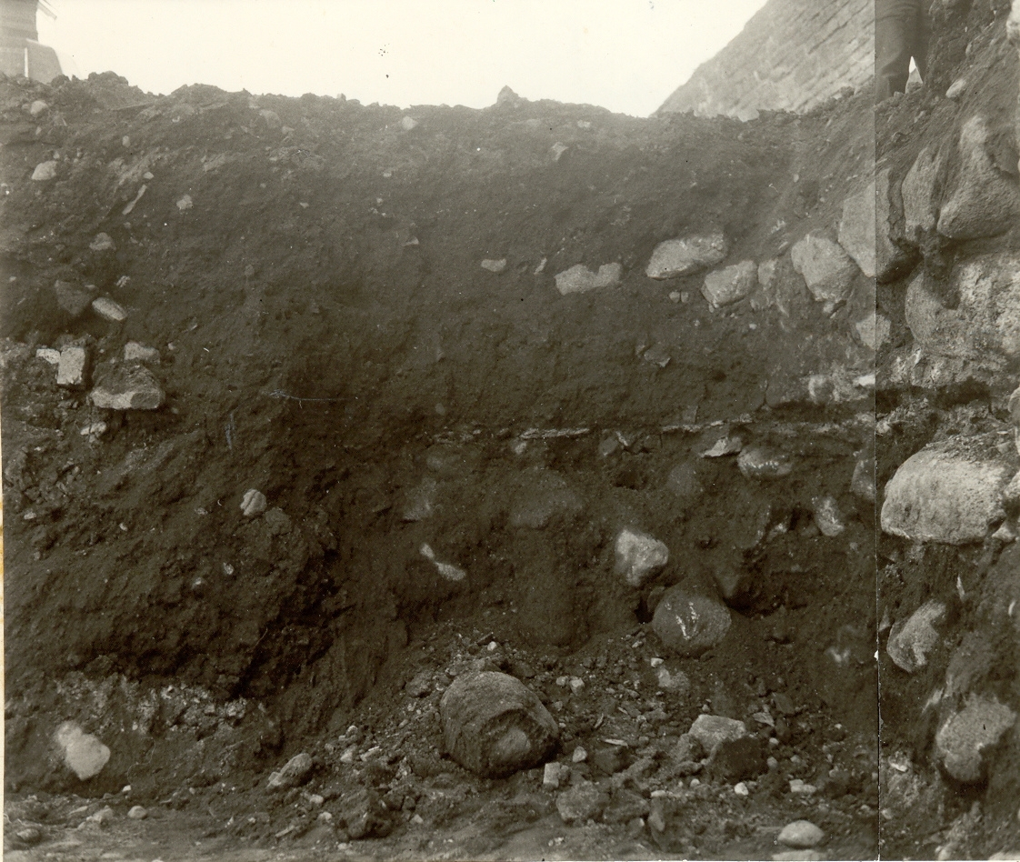 Schaktets profil mot öster. Detalj av sydöstra hörnet.