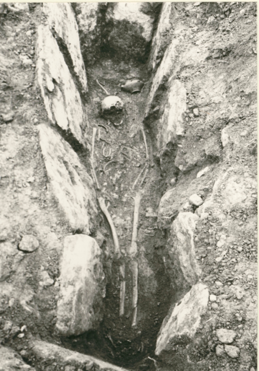 En hällkista med mänskliga kvarlevor, som påträffades vid utgrävningen av gravfältet i Störlinge.
