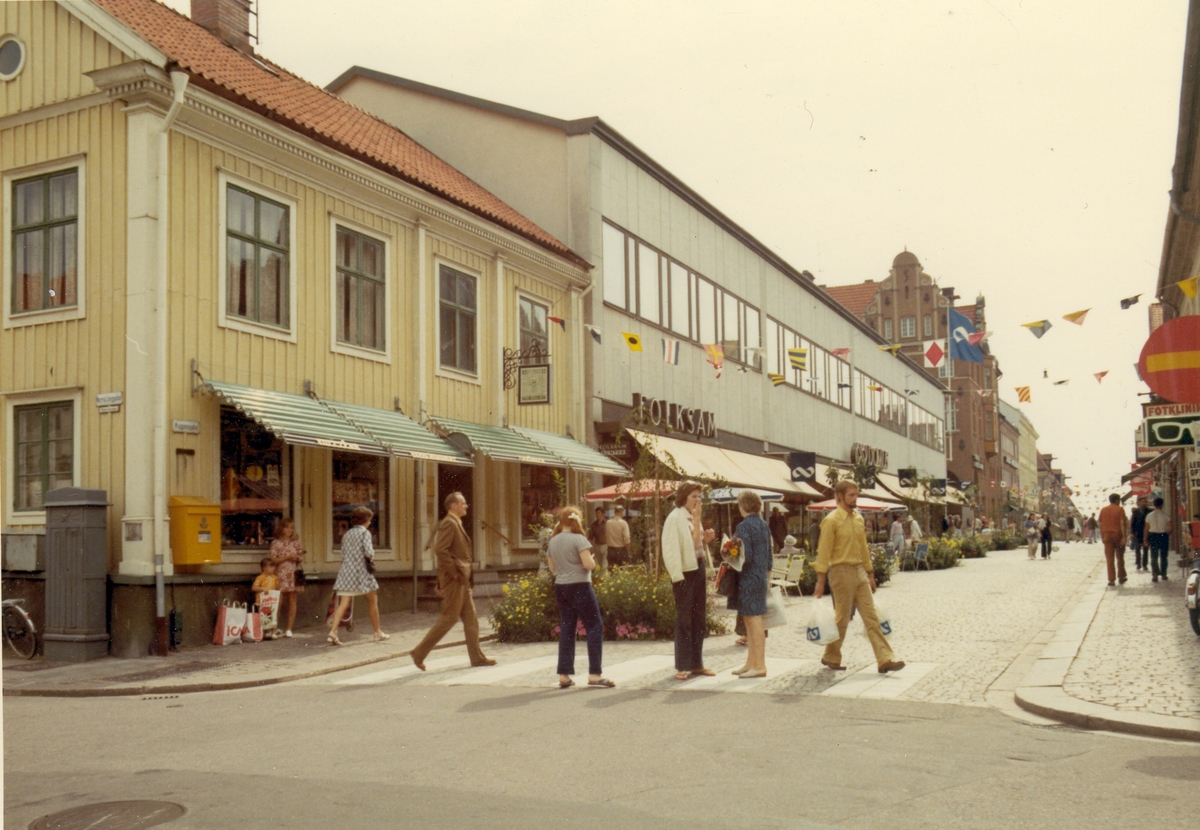 Kaggensgatan 1970-tal. Domus har ersatt alla gamla trähus i kvarteret Åldermannen utom det Kullzénska huset.