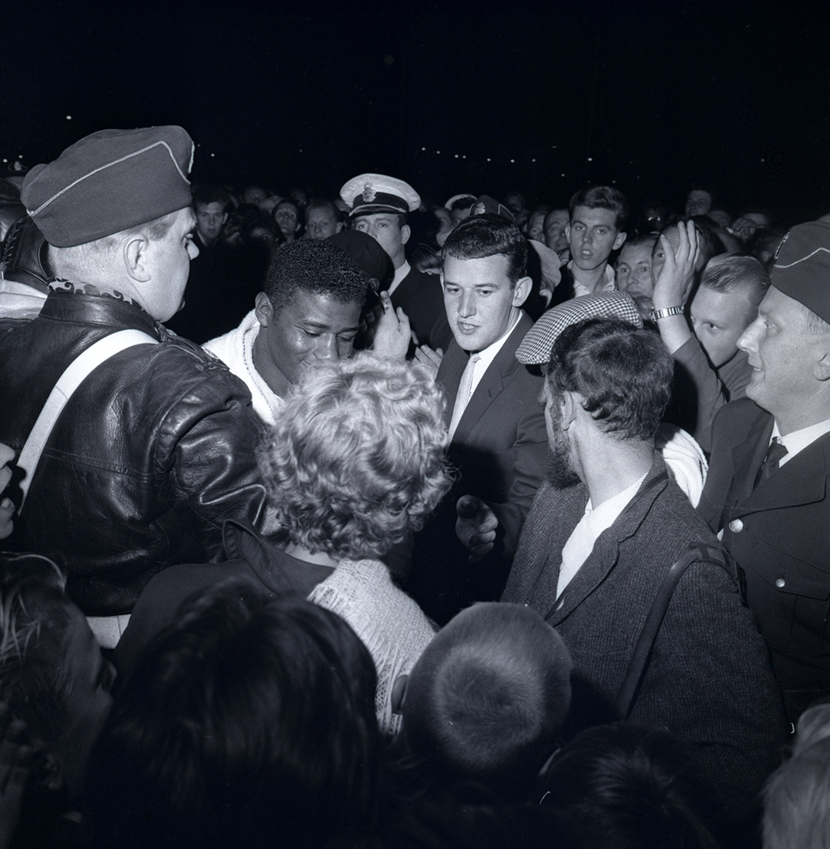 En publik, polis och boxaren Floyd Pattersson.