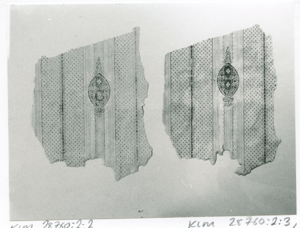 Tapeter funna i Krusenstiernska gården vid omtapetsering 1970. Tapeter från salen.