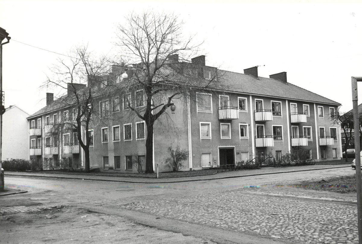Nybrogatan 2 i Kalmar. Lägenheter där en del har balkonger. I taket finns några takkupor.