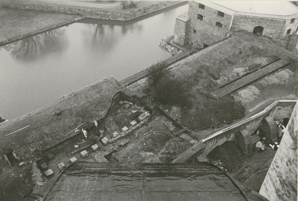 Från utgrävningen av lusthusen på västra vallen. Foto från Kuretornets lanternin.