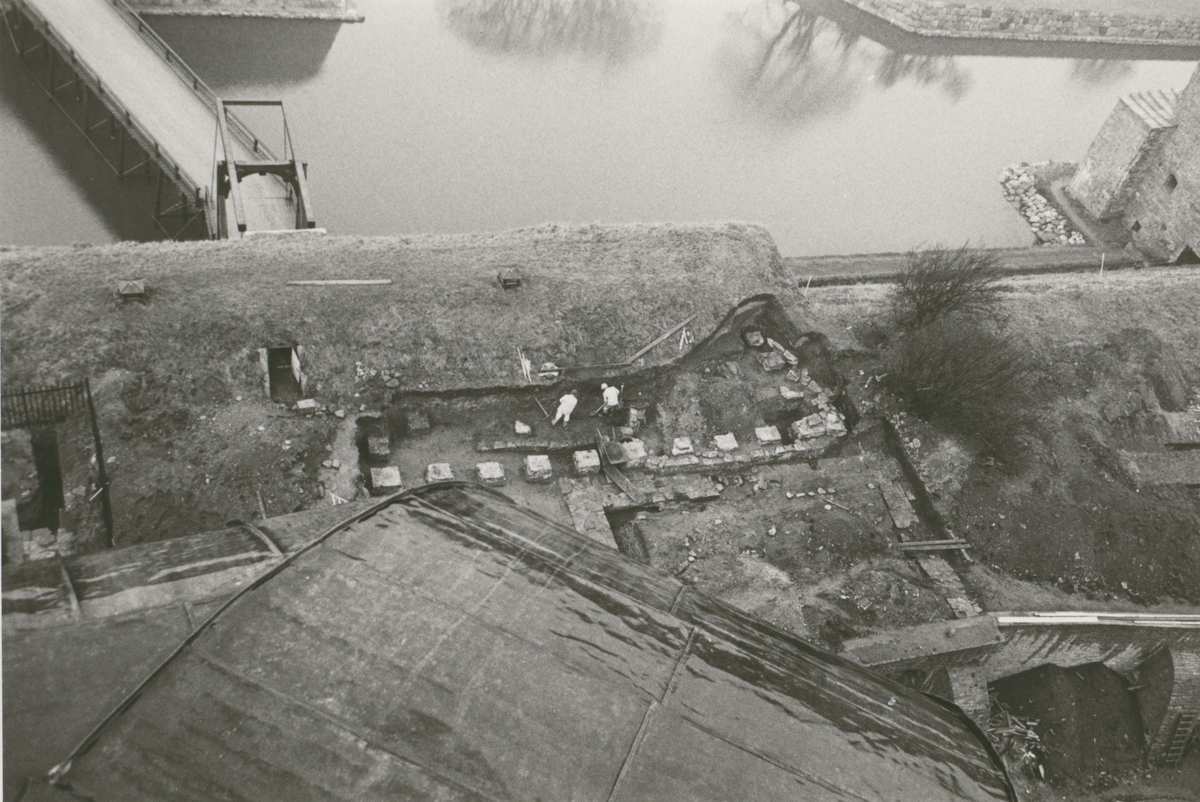 Från utgrävningen av lusthusen på västra vallen. Foto från Kuretornets lanternin.
