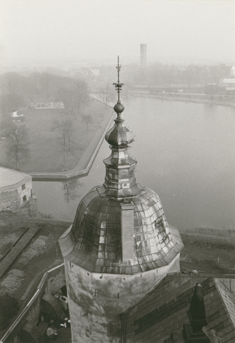 Kungsmakstornet. I bakgrunden skymtar norra postejen. Stadsträdgården och Kvarnholmen.