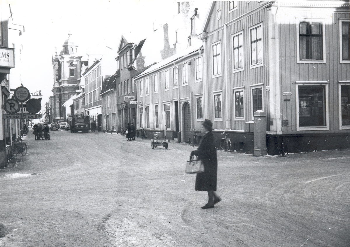 Korsningen Norra Långgatan - Kaggensgatan. Huset till höger är Kullzénska, det enda bevarade huset i kv Åldermannen.