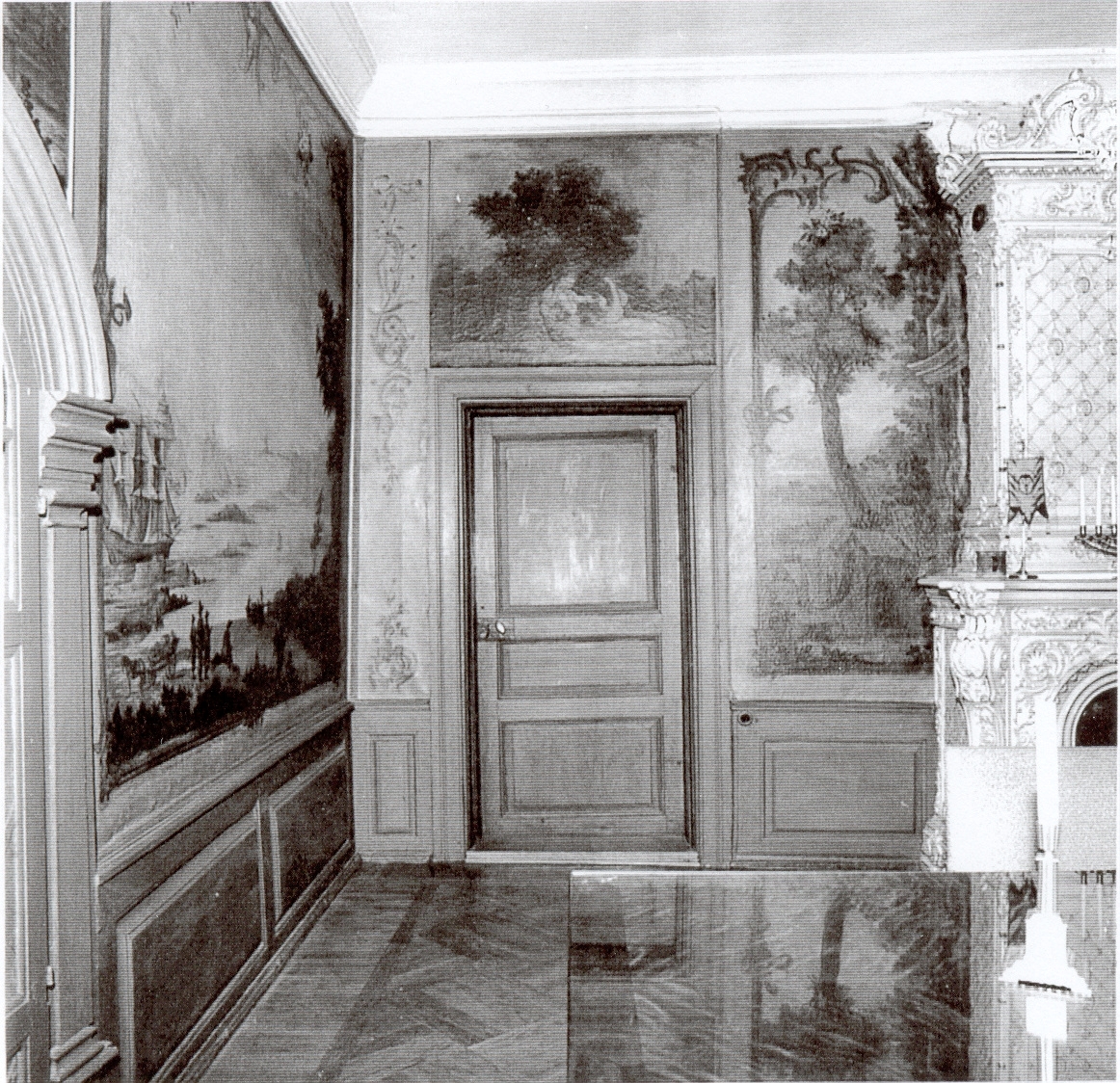 Väggmålning i nedre våningens sal i en fastighet i kvarteret Gästgivaren.