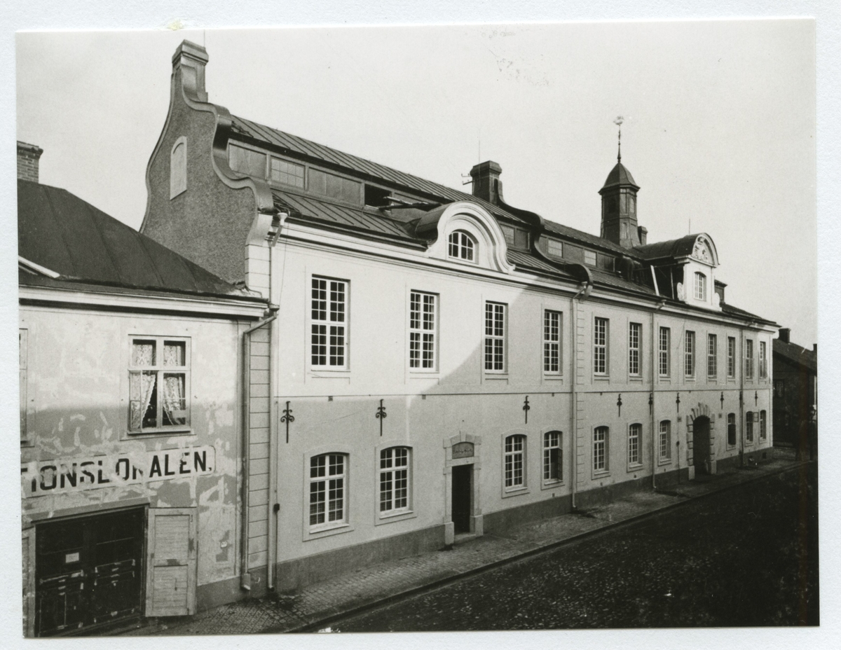 Polishuset i Kalmar med ankarslut och takkupor samt trappgavel. År 1908.