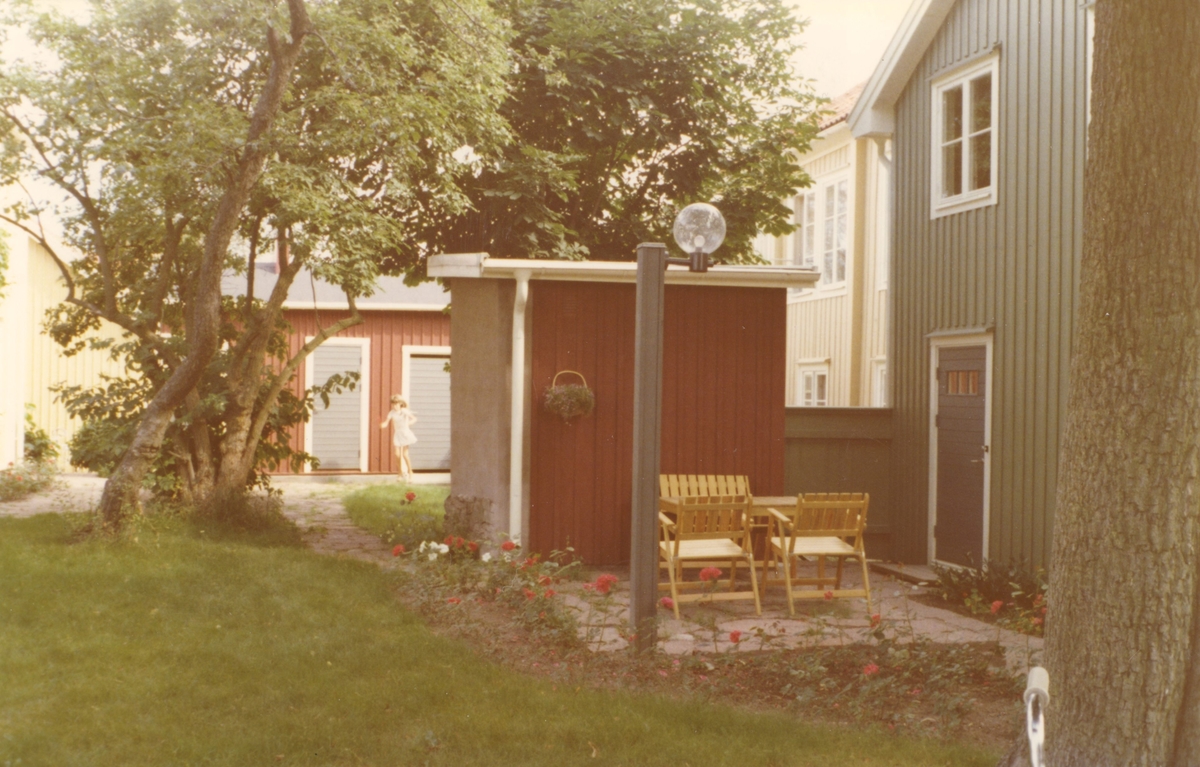 Kv Laken och Laxen. Återuppbyggnad av de hus som sparades och flyttades när Länsstyrelsen och Polisen byggde nytt på Malmen. Bilderna är tagna inom ramen för Kalmar kommuns inventering av Kvarnholmens bebyggelse 1974 och skänkta till länsmuseet.