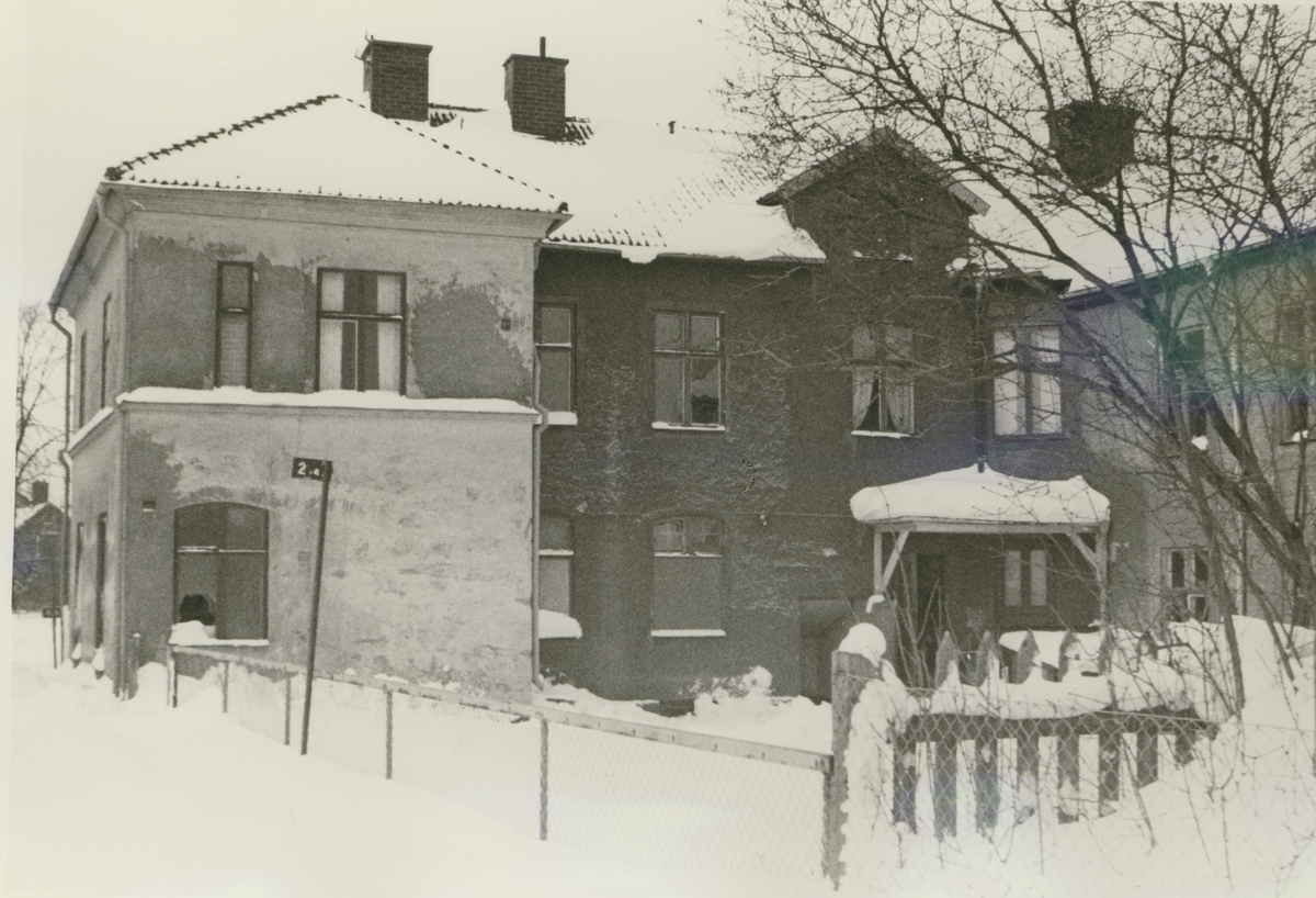 Bostadshus, fasad sydväst. Bilderna är tagna inom ramen för Kalmar kommuns inventering av Kalmars bebyggelse 1974 och skänkta till länsmuseet.
