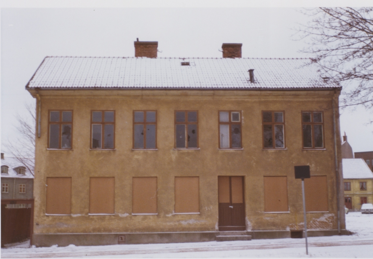 Fastighet i kv Laxen, tomt nummer 1. Bostadshus med putsad fasad. Rivet. Bilderna är tagna inom ramen för Kalmar kommuns inventering av stadens bebyggelse 1974.