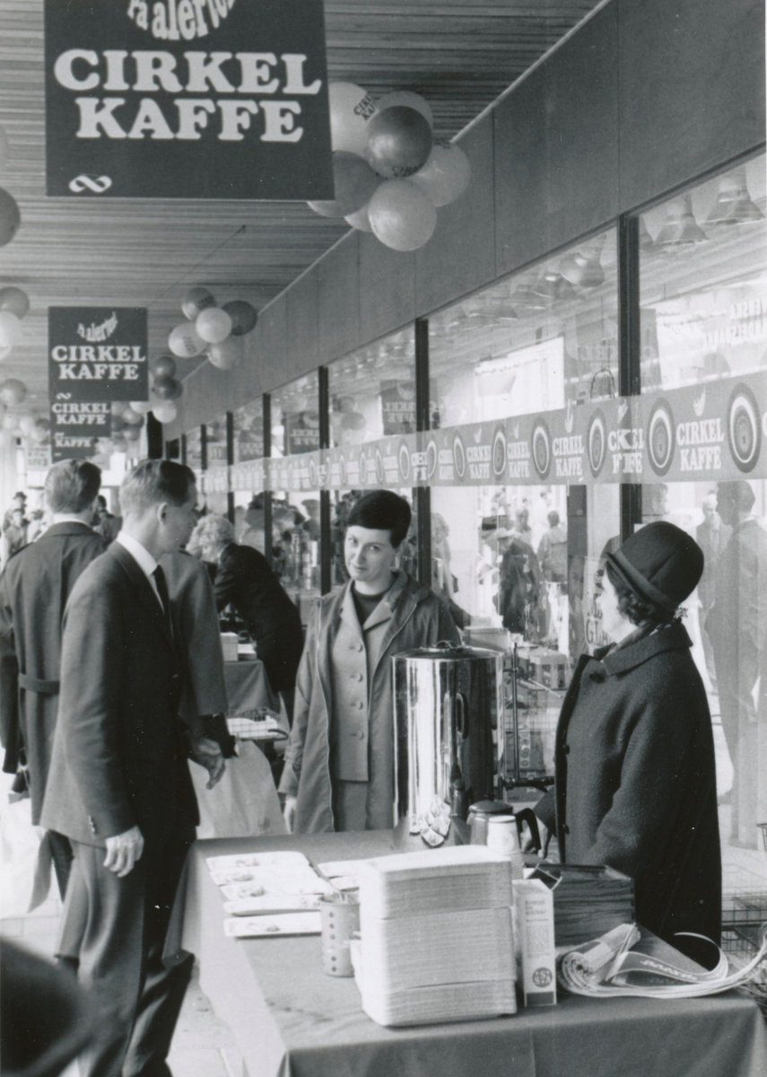Demonstration av Cirkelkaffe i arkaden tillhörande Domusvaruhuset. Mot Storgatan.