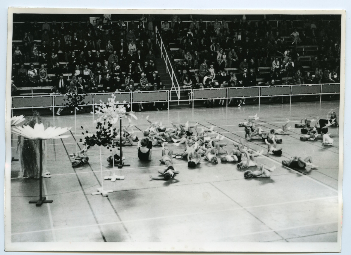 Husmodersgymnastiken firar 25-årsjubileum i oktober 1969 med gymnastikuppvisning i Sporthallen. Här är det barngymnastik.