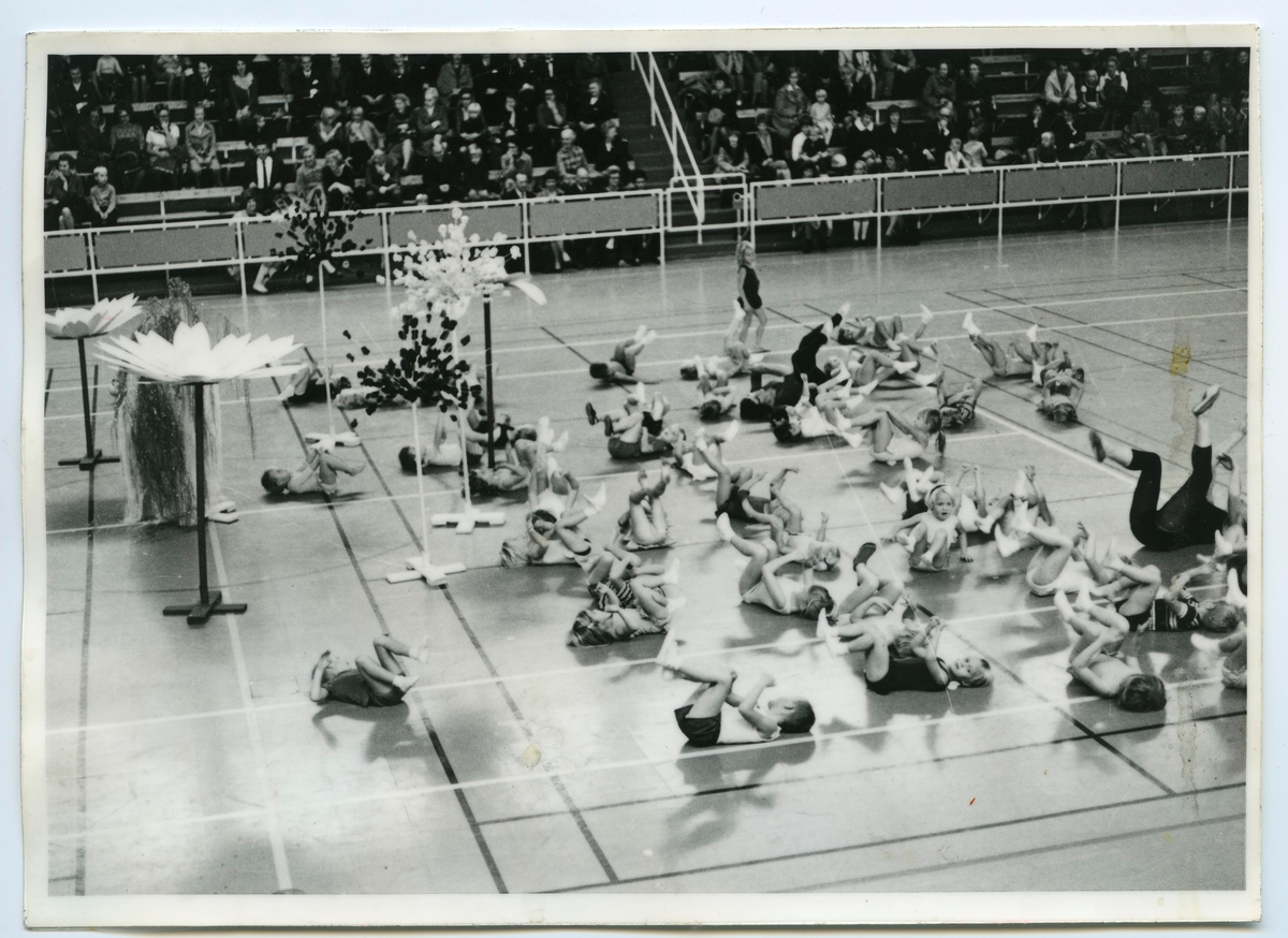 Husmodersgymnastiken firar 25-årsjubileum i oktober 1969 med gymnastikuppvisning i Sporthallen. Här är det barngymnastik.
