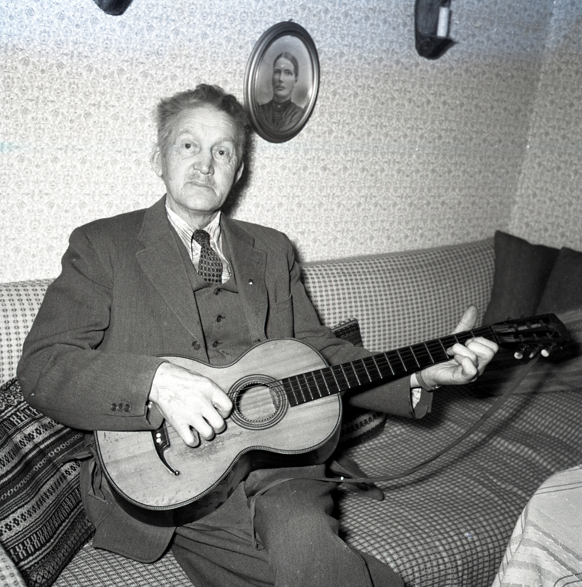 Titel: William Kjellberg i Gärdslösa spelar gitarr.