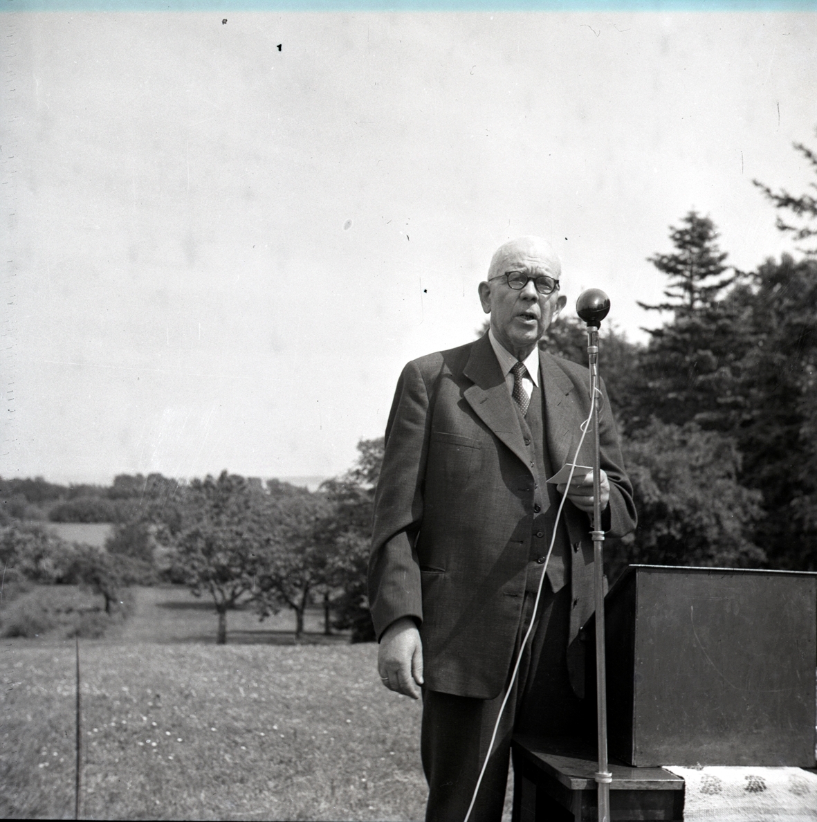 Arthur Heiding (politiker tillhörig Bondeförbundet) vid mikrofonen.