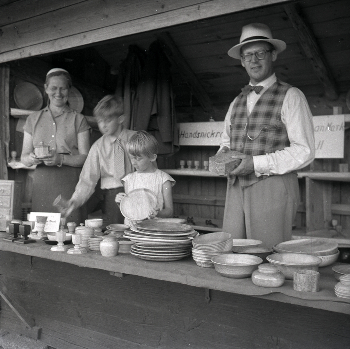 Personer som säljer handsnickrade varor på Algutsrums marknad.