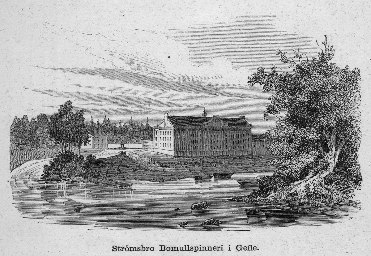Strömsbro Bomullsspinneri. Hämtat ur boken "Ett år i Sverige" 1862.