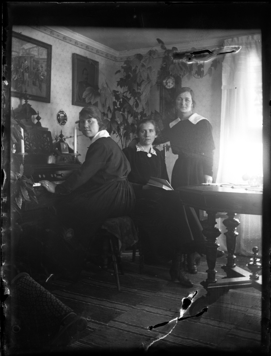 Framför orgeln tv sitter Julia W. De två övriga kan vara hennes två systrar, Jenny och Jördis. Bilden är tagen inomhus, i befintligt ljus. Texten på den lilla runda tavlan, på väggen framför Julia, står det ”Gruss aus Stettin”.