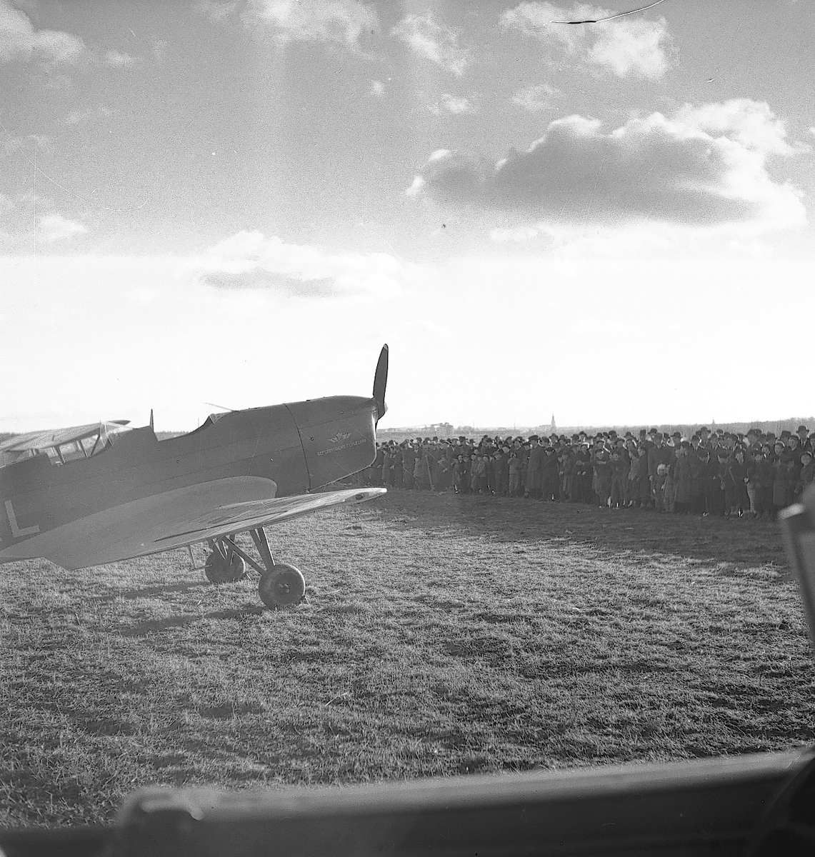 Flygdag vid Avans flygfält i november 1945. Planet är en Klemm 35.