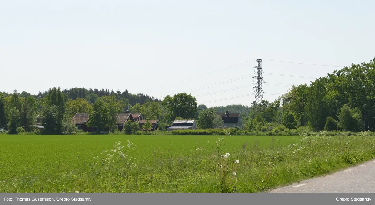 Bostadshus och kraftledningsstolpe i Lindbacka by, 2016-05-31