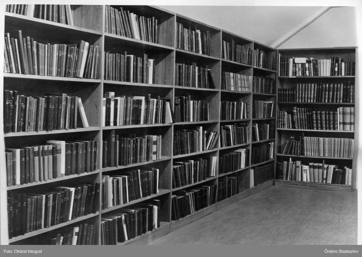 Hyllor i Guldsmedshyttans Folkbibliotek i Storå, 1955