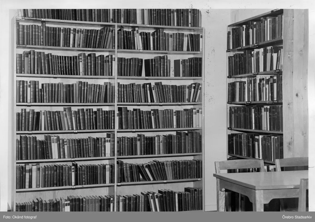 Bokhyllor i Fellingsbro Folkbibliotek, 1955