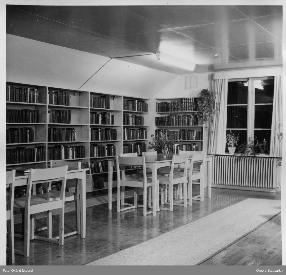 Läsesal i Lekebergs Folkbibliotek i Fjugesta, 1955
