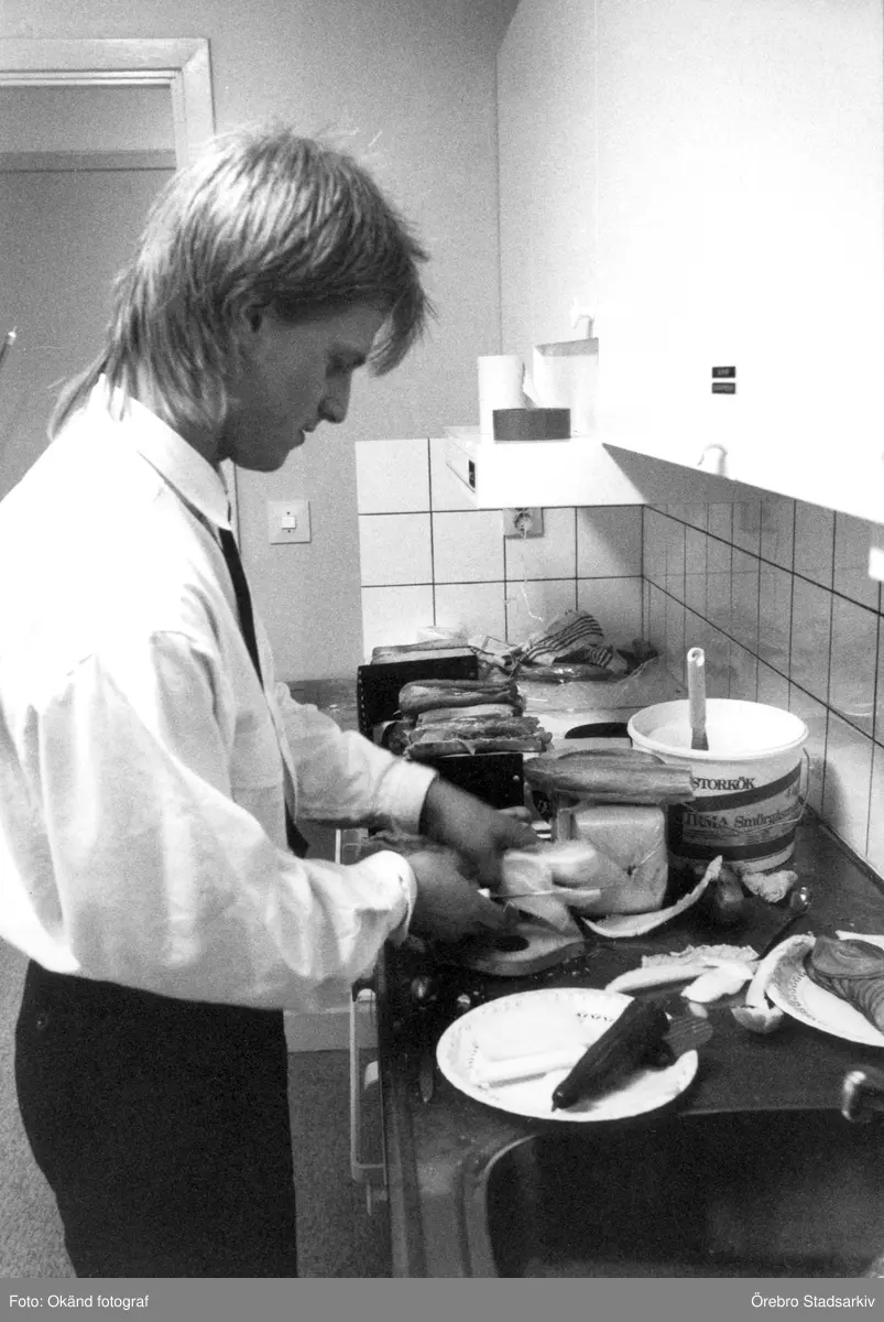 Johnny Berglund ser till att smörgåslagret är påfyllt, 1987