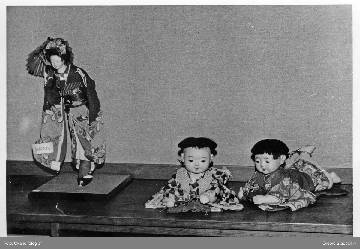 Dockor på utställning på Örebro Stadsbibliotek på Fabriksgatan, 1969