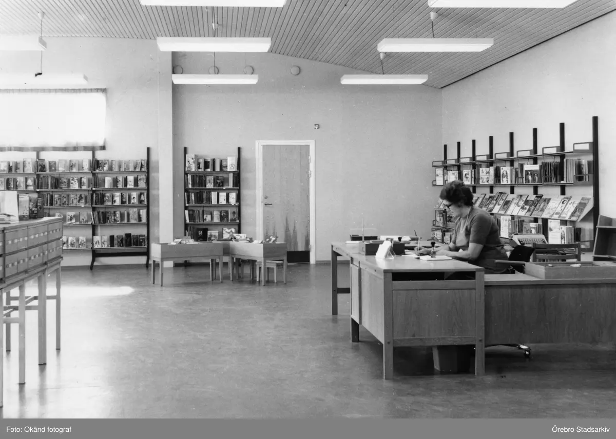 Utlåningsdisk på Adolfsbergs filialbibliotek, 1969