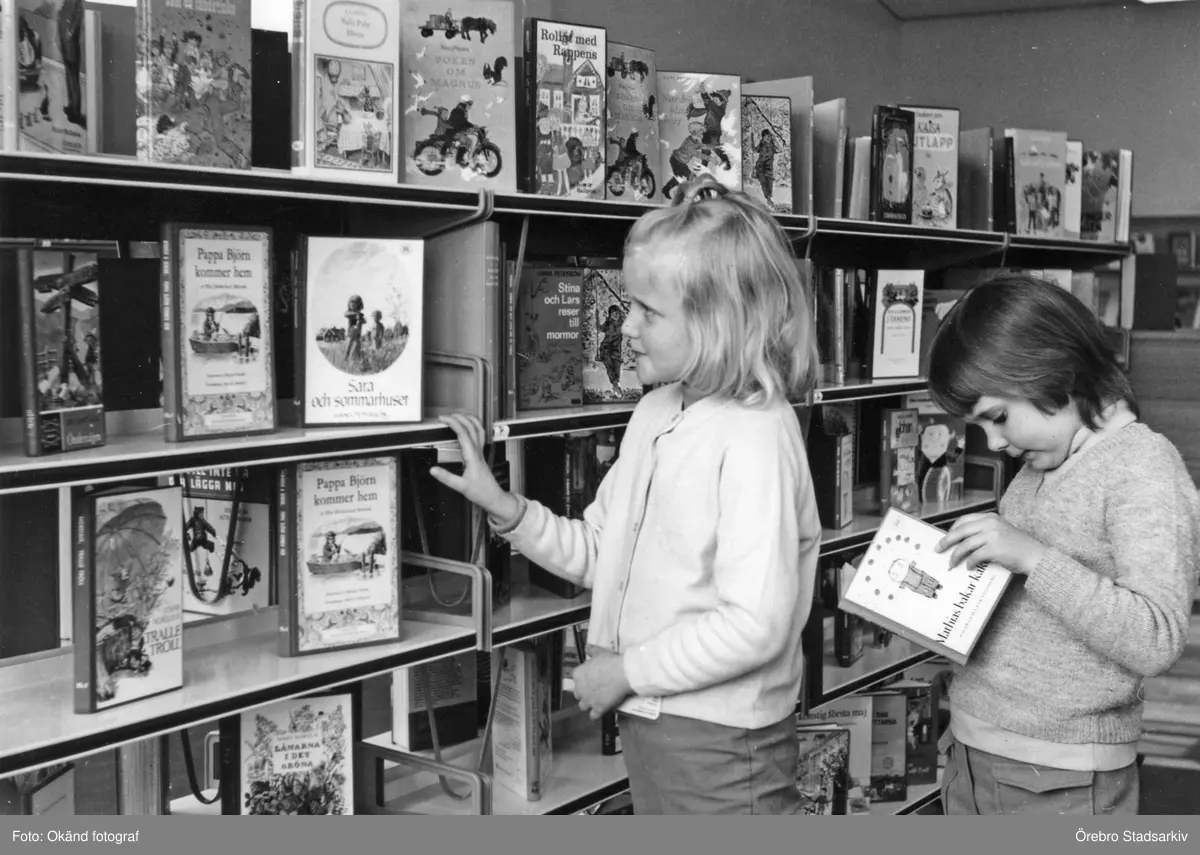 Unga besökare på barnavdelningen på Adolfsbergs filialbibliotek, 1969