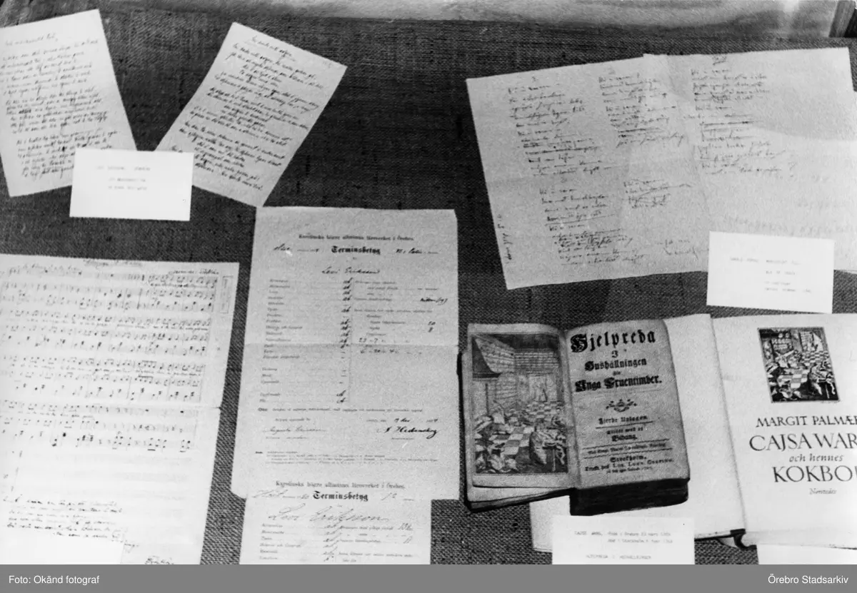 Noter och äldre texter på utställning om Örebro på Medborgarhuset, 1968