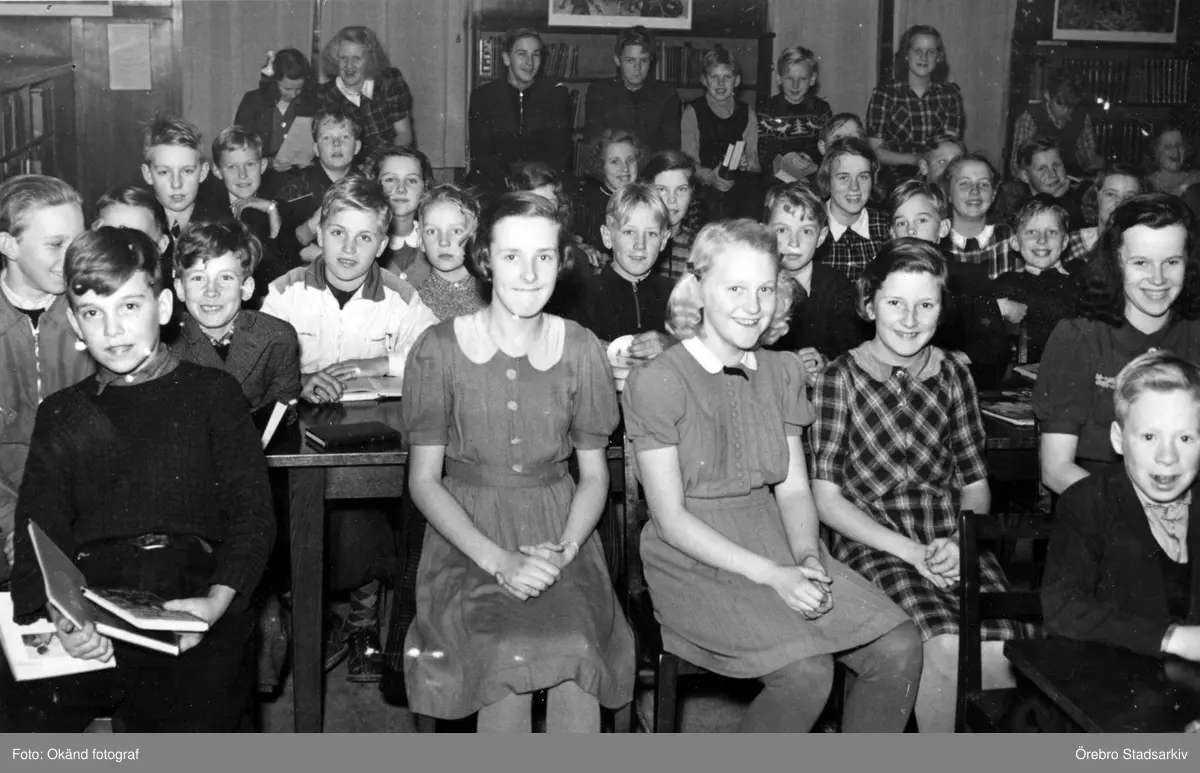 Besökande barn på Örebro Stadsbibliotek på Fabriksgatan, 1944 ca
