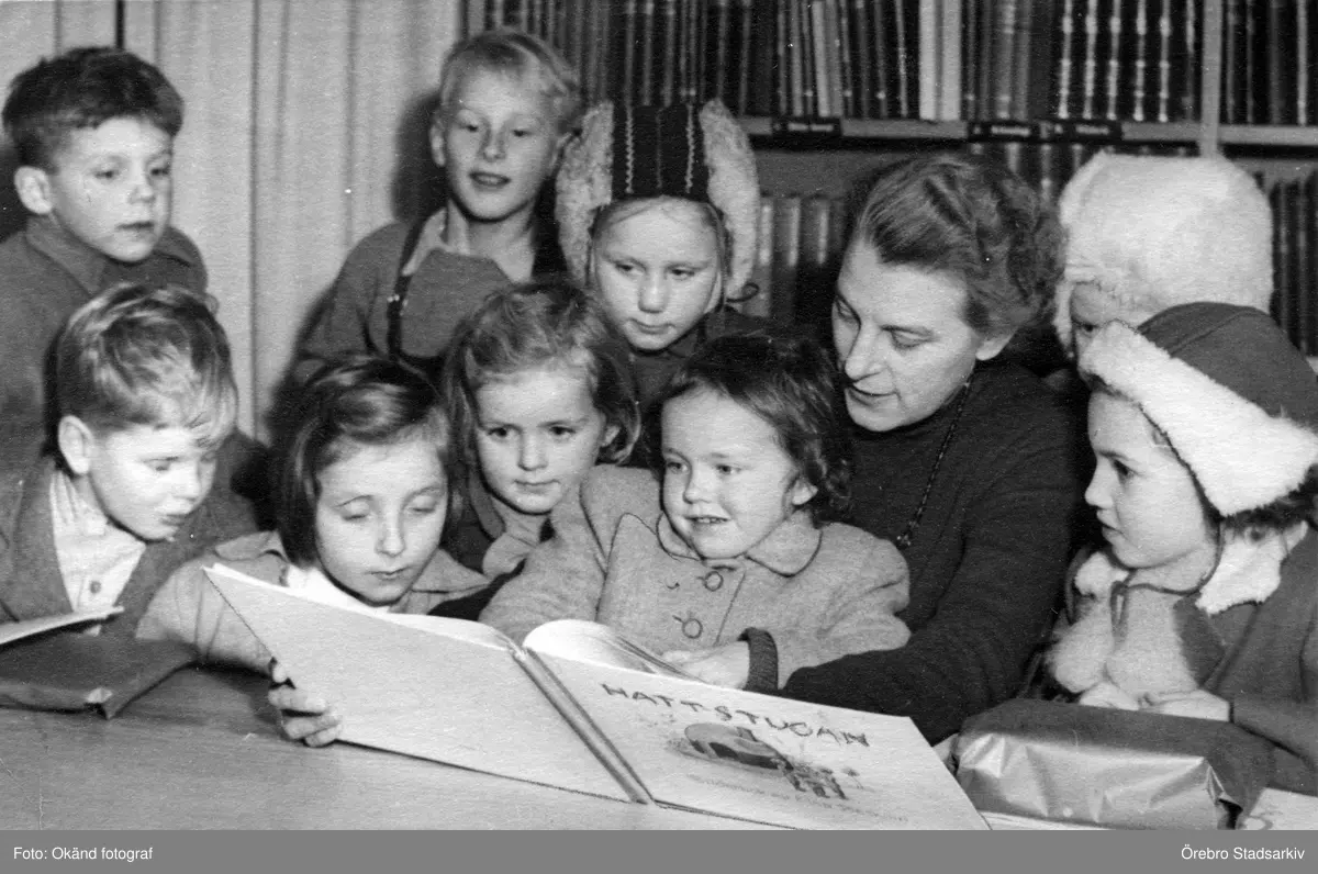 Läsestund på Örebro Stadsbibliotek på Fabriksgatan, 1951